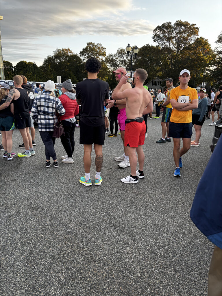 目標タイムは鹿児島での練習を思い返すと、追い込んで走って3時間45分くらいだと思われたが、次の日はニューヨークへ移動し観光するための脚を残す必要があるので3時間55分前後とした。