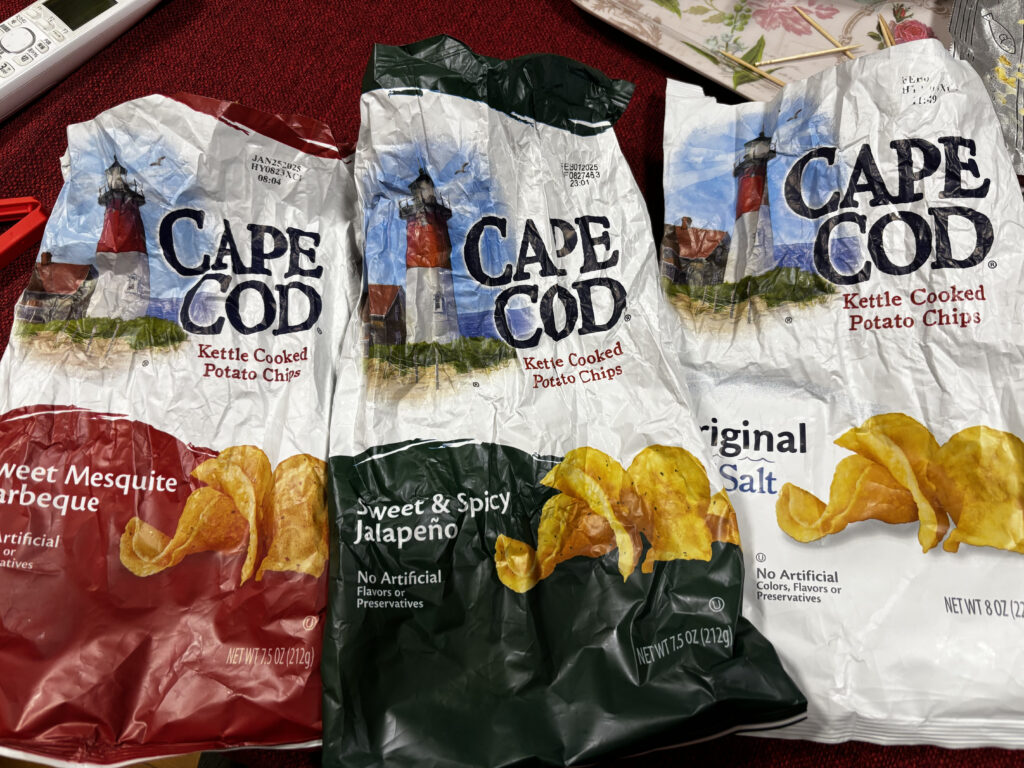 その横にはリンゴが丸ごとあり、ドーナツ、地元のポテチが置いてあった。